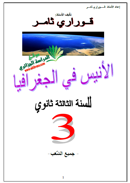 الثالثة ثانوي : كتاب الأنيس في الجغرافيا جميع الشعب ( آداب و فلسفة –