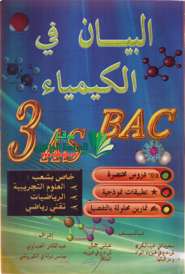 الثالثة ثانوي : كتاب البيان في الكيمياء - ( شعبة علوم تجريبية –